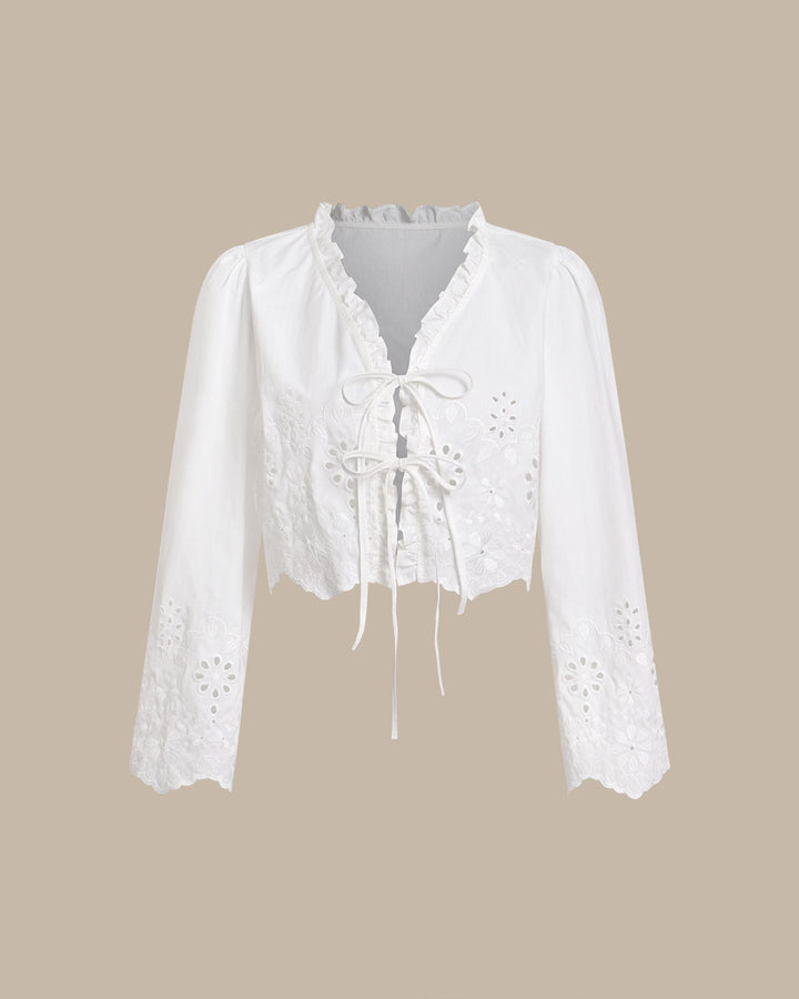 Beyaz Çiçekli Kısa Bluz
