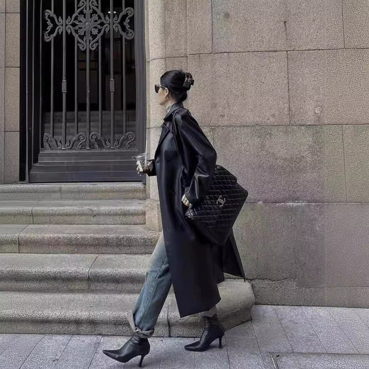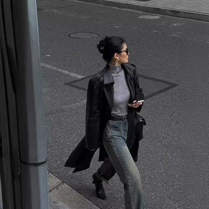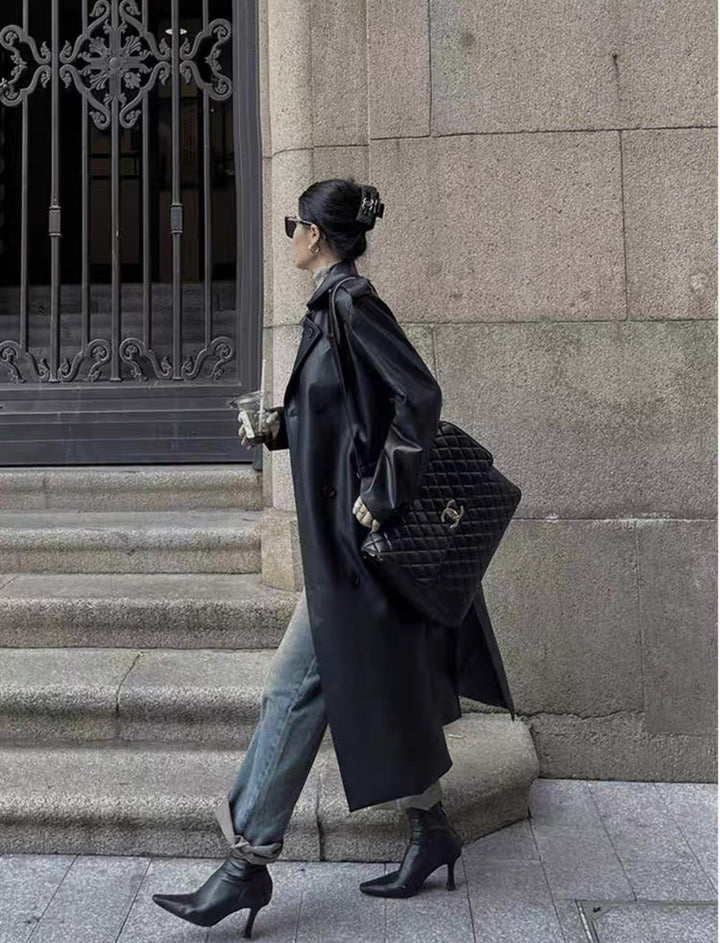 Şıklığı ve güçlü duruşu bir arada sunan siyah deri trençkot, modern şehir stilinin vazgeçilmez parçası. Uzun kesimi, belden bağlamalı kuşağı ve deri dokusuyla sofistike bir görünüm kazandırır. Günlük kombinlerden akşam şıklığına kadar geniş kullanım alanı sunar.