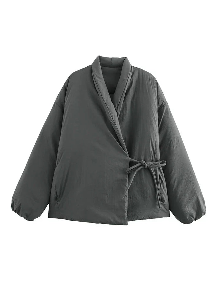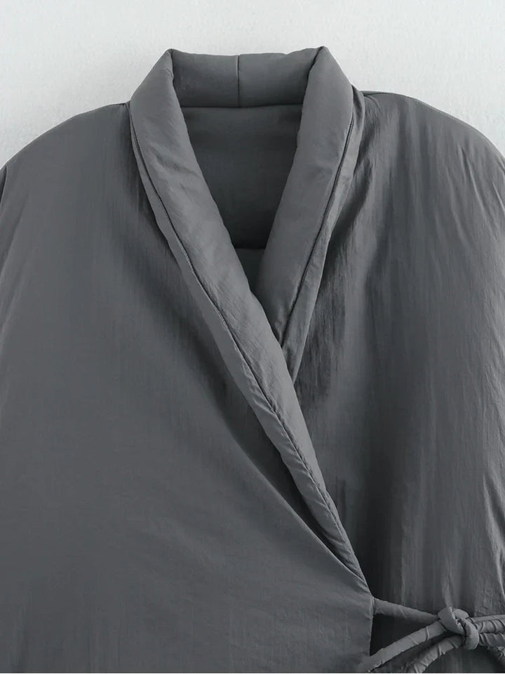 Kușak Detaylı Kimono Tarzı Şişme Mont