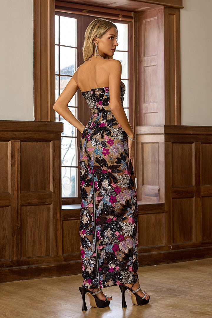 Leanna Koyu Mor Çiçek İşlemeli Uzun Elbise