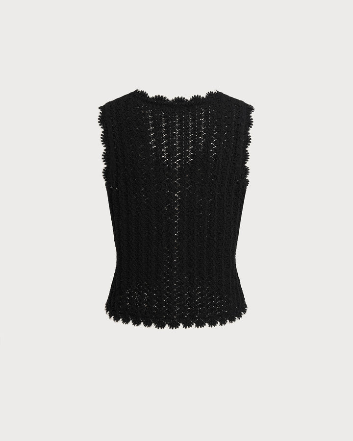 Siyah Kontrast V Yaka Örgü Yelek