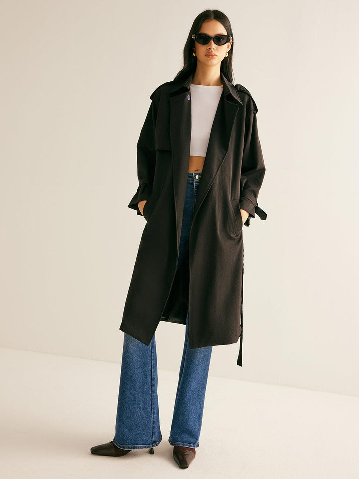 Jet Black Uzun Trençkot