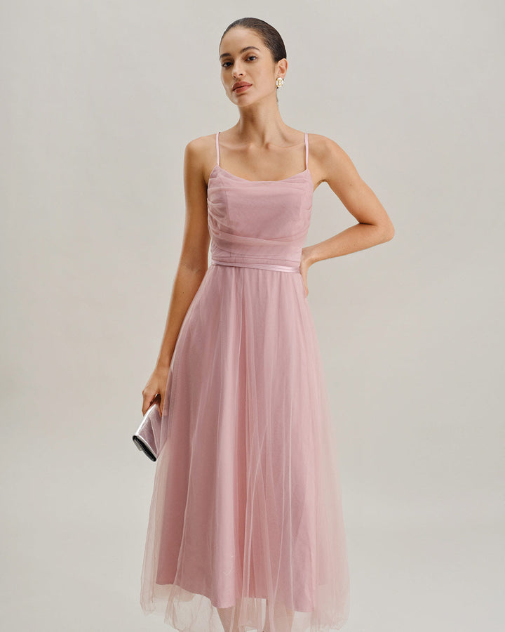 Hafif, yarı şeffaf ağ üst katmanı ile tasarlanmış bu midi elbise, güzel bir şekilde dökülerek akışkan, hafif bir siluet oluşturur. Kaygan tasarımı ve ayarlanabilir ince askıları, özel bir uyum sağlarken, yumuşak karamel tonu tüm cilt tonlarına yakışır.