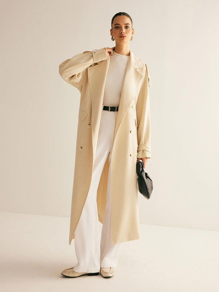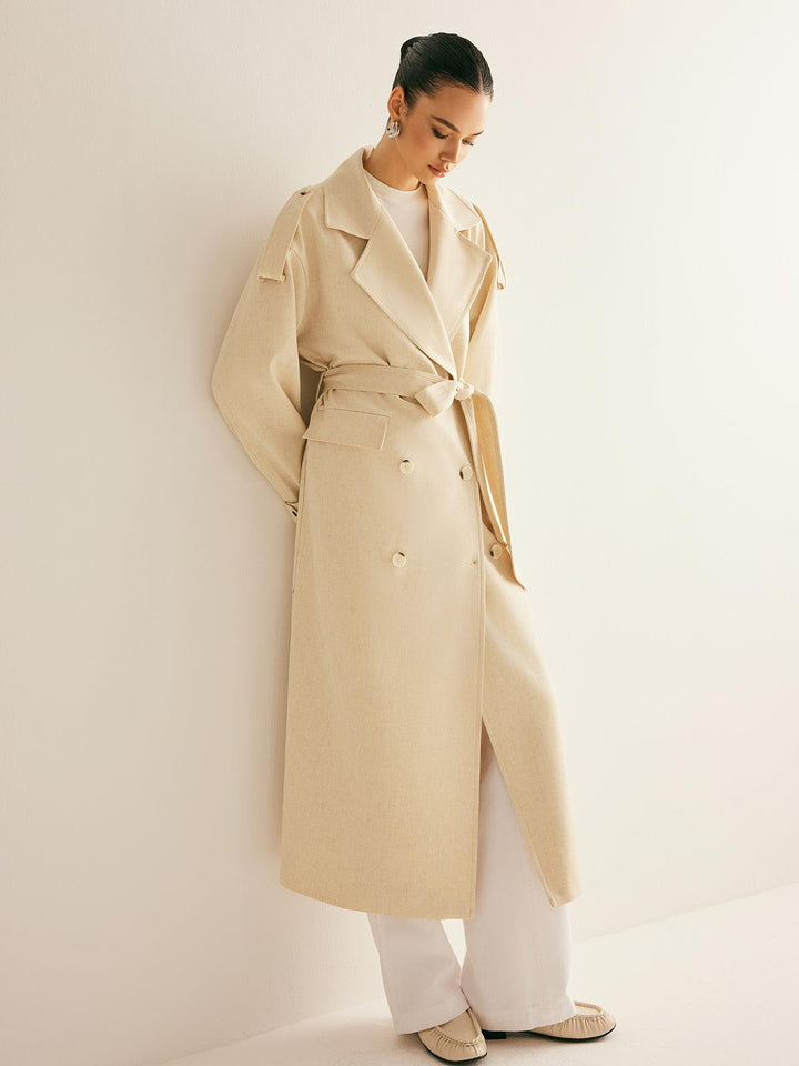 Pure Elegance Uzun Trençkot, klasik uzun kesimi modern detaylarla birleştirerek zamansız bir şıklık sunuyor. Rahat ve aynı zamanda sofistike tasarımı sayesinde hem günlük kullanımda hem de özel davetlerde zarafetinizi ön plana çıkarabilirsiniz. Yumuşak kumaş dokusu ve detaylara verilen özen, ceketi farklı bir boyuta taşıyor.