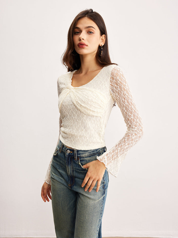 Romantik Düğümlü Dantel Bluz