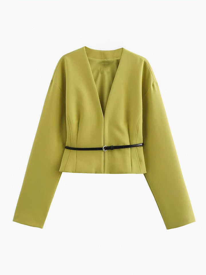 Sarı-Kireç Tonlu İnce Kemer Detaylı Blazer Ceket