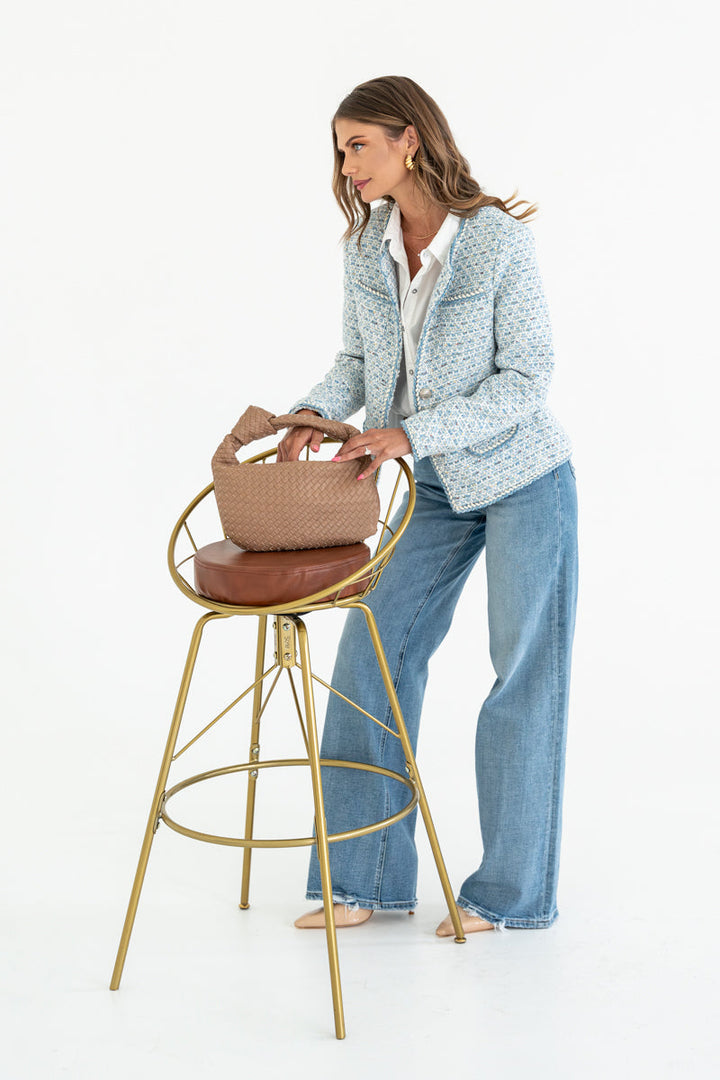Göz alıcı bir şıklığa hazır ol! Brenna Tweed Ceket, mavi tonlardaki tweed kumaşı, örgü şerit detayları ve düğmeli tasarımıyla sofistike ve eğlenceli bir tarzı bir araya getiriyor. Yüksek bel pantolon ve topuklu ayakkabılarla kombinlediğinde ofis şıklığını zahmetsizce bir üst seviyeye taşıyabilirsin.
