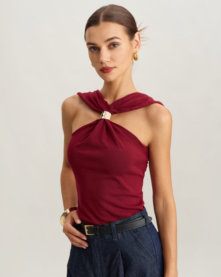 Şarap Kırmızısı Örgülü Ribanalı Atlet
