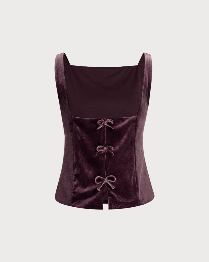 Şarap Kırmızısı Kare Yaka Kadife Atlet