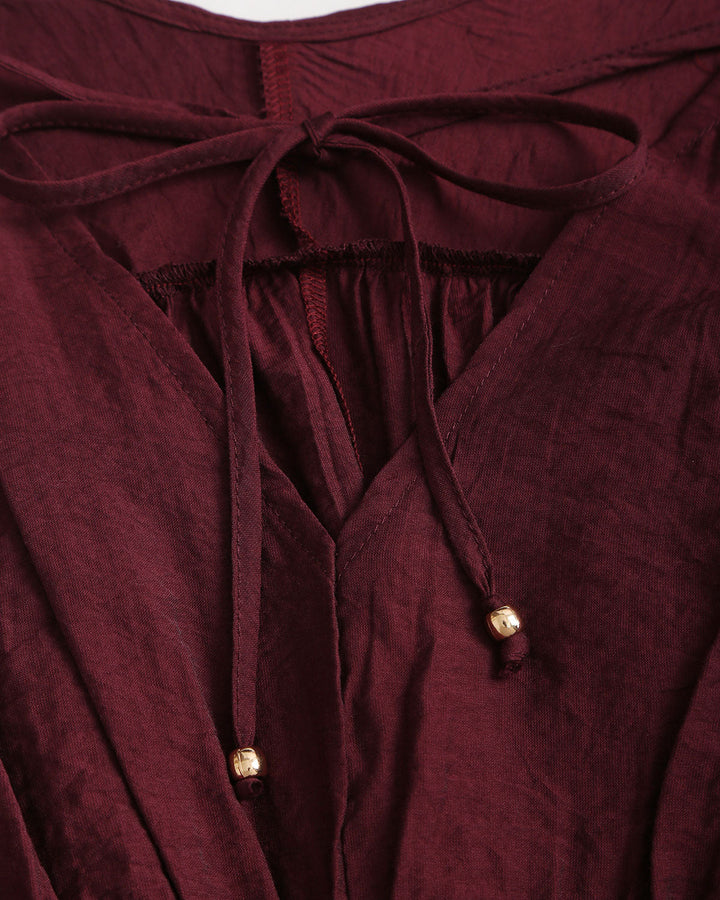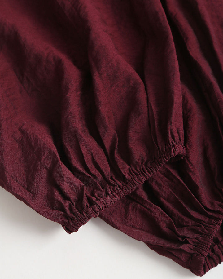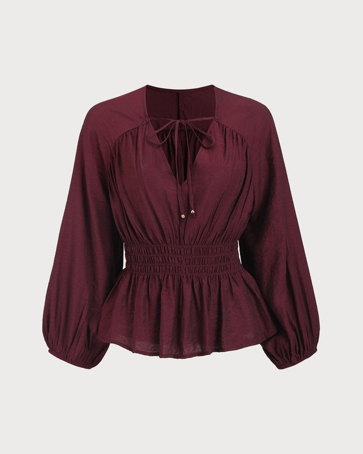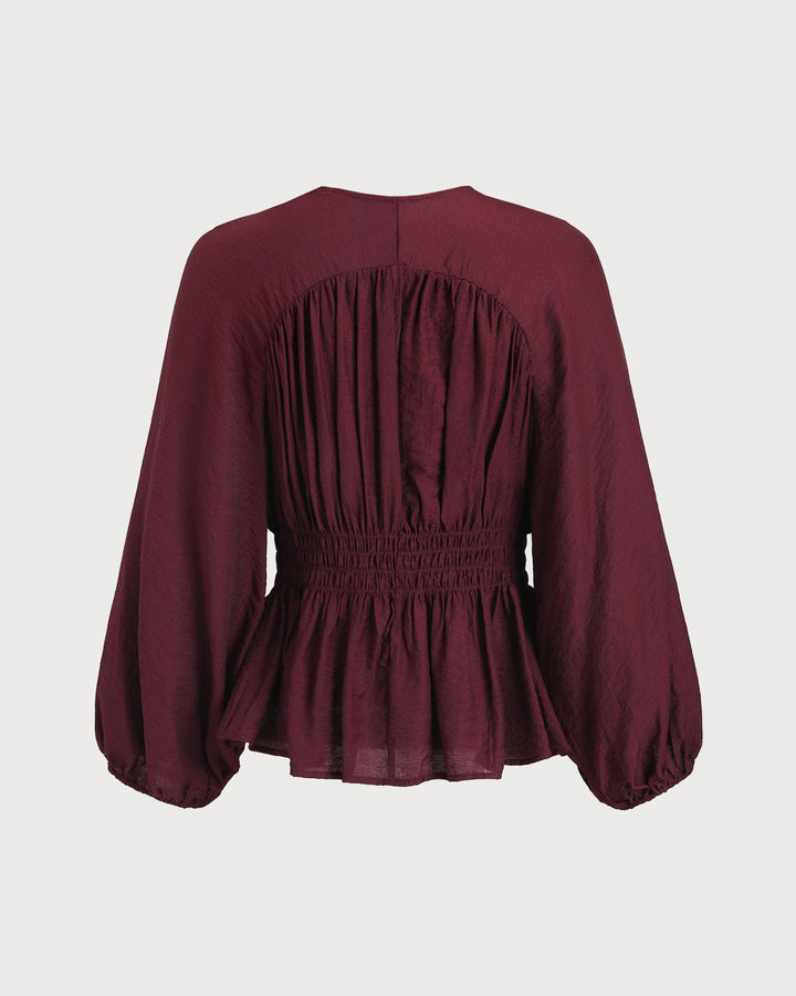 Şarap Kırmızısı V Yakalı Büzgülü Bluz