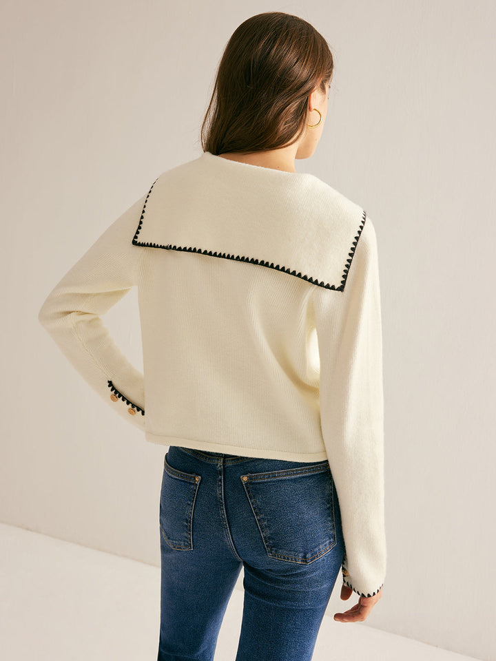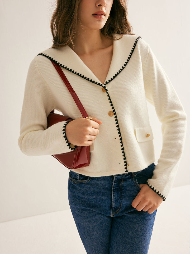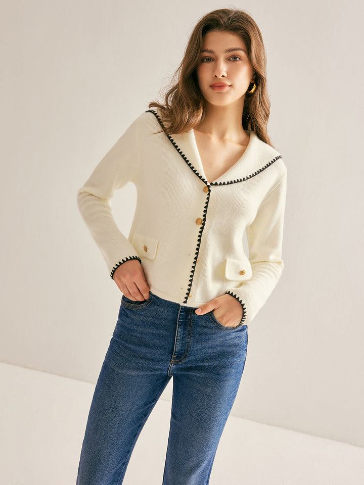 Yelken Yaka Kontrast Uçlu Düğmeli Hırka