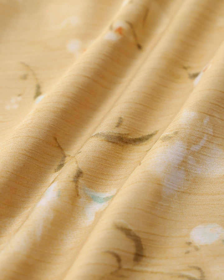 Sarı Çiçekli Kıvrımlı Midi Elbise
