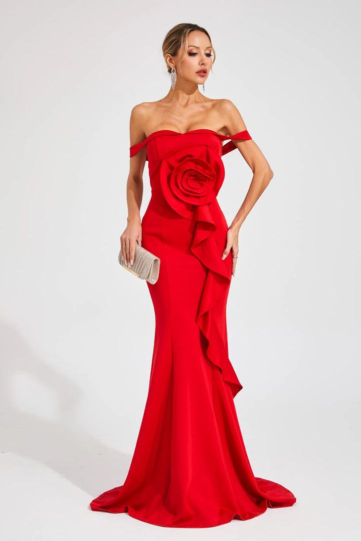 Ysolde Kırmızı Gül Bandaj Uzun Elbise