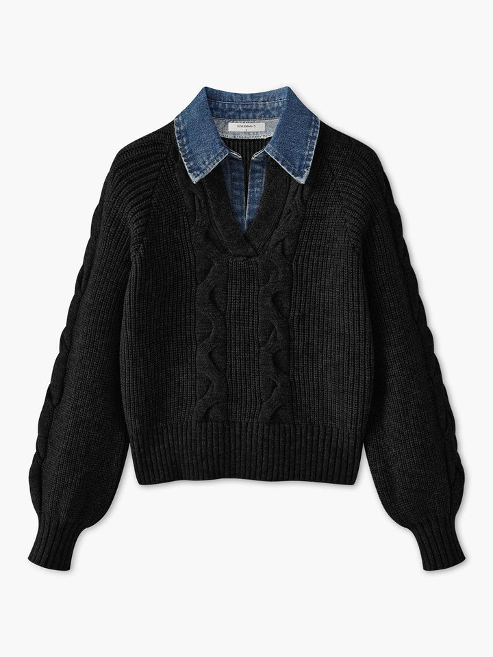 Şık örgü deseni ve denim yaka detaylarıyla modern bir tasarıma sahip gri kazak. Günlük şıklık için ideal olan bu kazak, sıcak ve rahat bir dokuyla stilinizi tamamlar. Hem casual kombinler hem de özel anlar için mükemmel bir tercih!