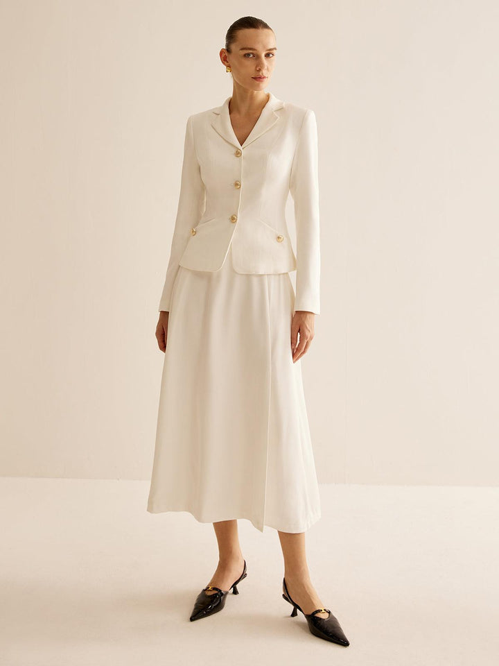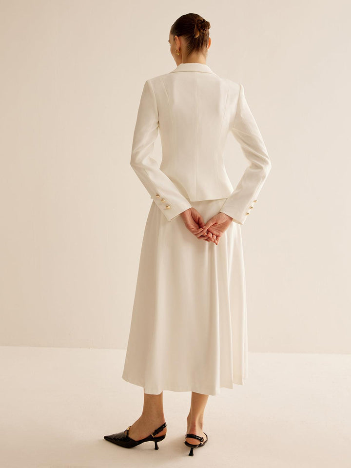 Ekru Altın Düğme Detaylı Blazer Ceket