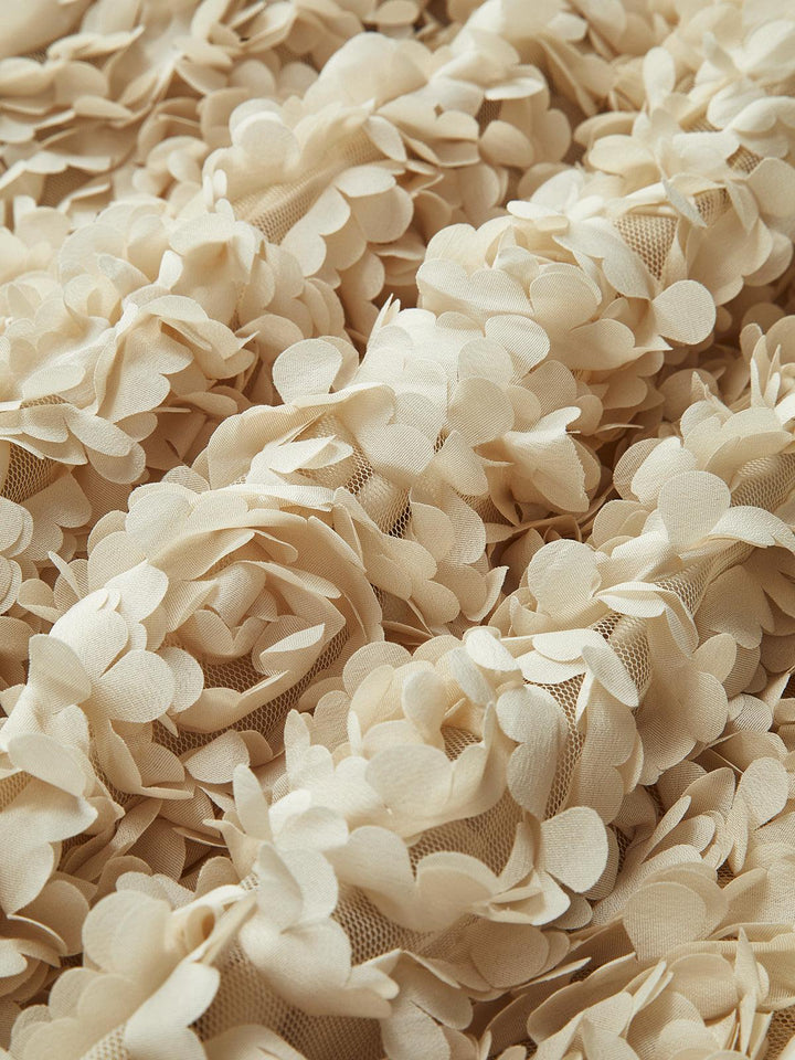 Zarif çiçek detaylarıyla öne çıkan ekru kısa ceket, feminen ve şık bir görünüm sunar. Özel günlerde ve davetlerde tarzınızı vurgulamak için mükemmel bir seçim!