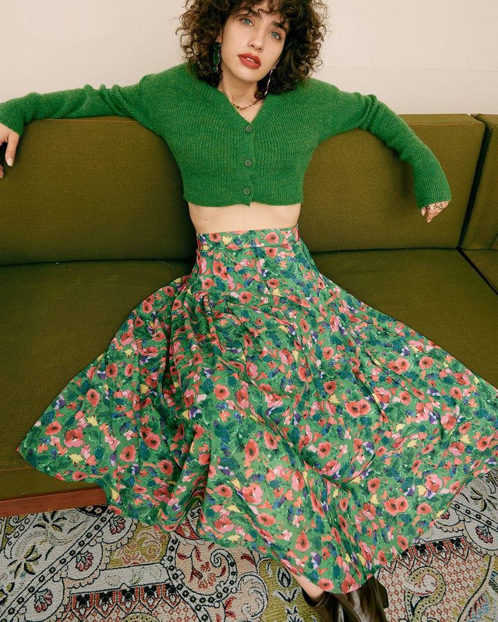 Parlak ve hayal gibi. Bu çiçekli etek, ekstra canlılık katmak için çiçekli detaylarla A-line midi boyda tasarlanmıştır. Hem plise tasarımı, hem oturan beli, hem de yan fermuar kapaması ile hepsi bir arada. Ek olarak, düğme kapama ve soldaki yüksek yırtmaç, sizi modern bir dokunuşla tamamlayarak, bacaklarınızı ince bir şekilde gösterir, oldukça etkileyici ve fonksiyonel.