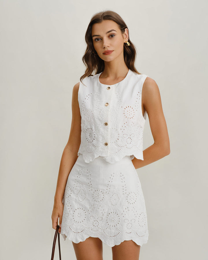 Beyaz Jakarlı Tek Sıra Yelekler