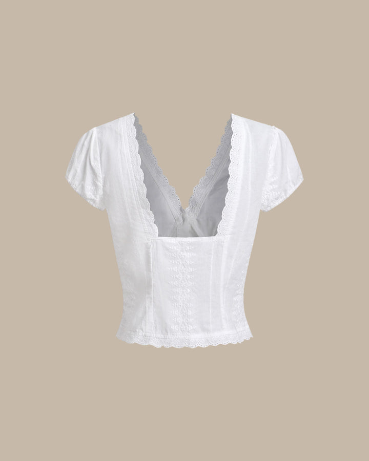 Beyaz Dokulu Kısa Kollu Bluz