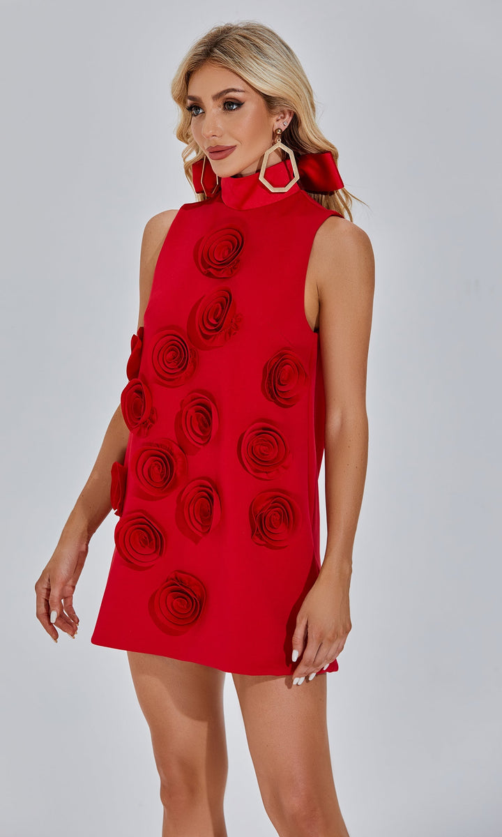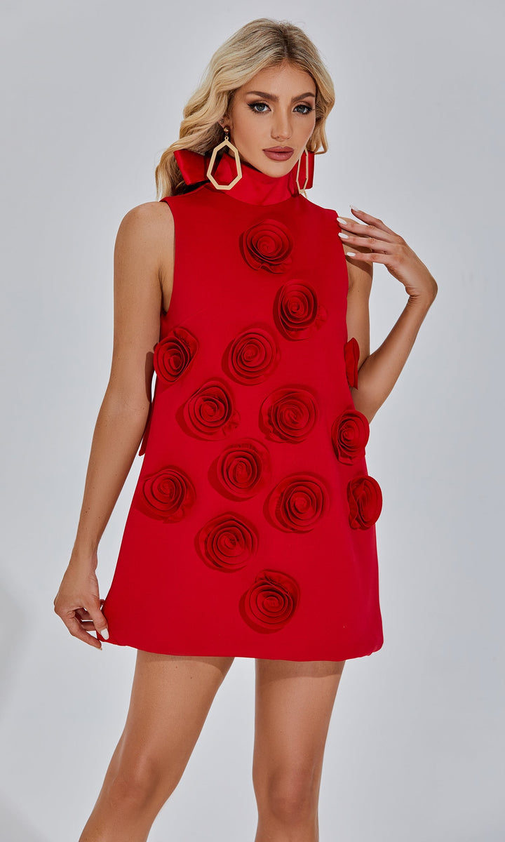 Jodie Kırmızı 3D Mini Çiçekli Elbise