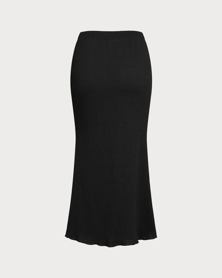 Siyah Örgü Lastikli Bel Denizkızı Midi Etek