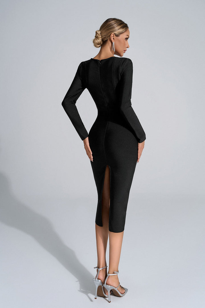 Esmeralda Siyah Uzun Kollu Midi Elbise