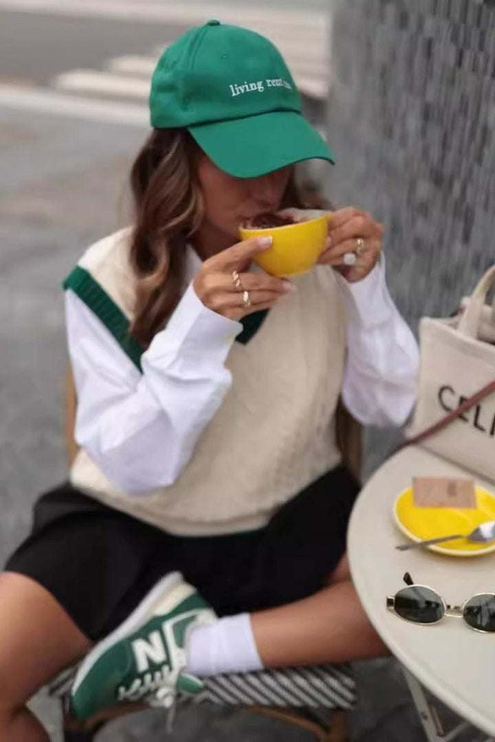 Bu orta kalınlıkta örgü yelek, eğlenceli kontrast renk tasarımıyla büyüleyici bir örgü desenine sahiptir. Gündelik rahatlığı canlı ve sevimli bir estetikle birleştiren bu model, rahat ve şık bir görünüm için gömleklerin veya balıkçı yaka kazakların üzerine giyilmek için mükemmeldir.