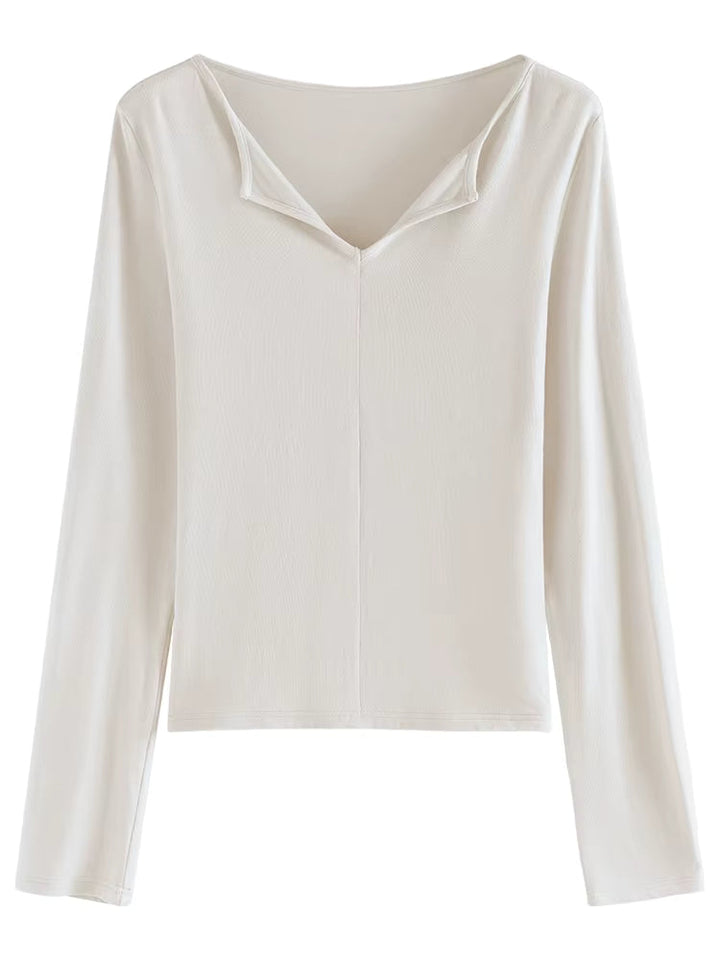 Kadın V Yaka Uzun Kollu Slim Fit Pamuk Kazak