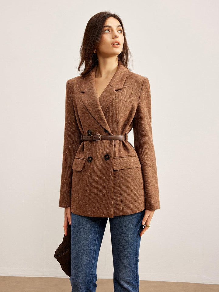 Kahverengi Kemer Detaylı Balık Sırtı Blazer Ceket