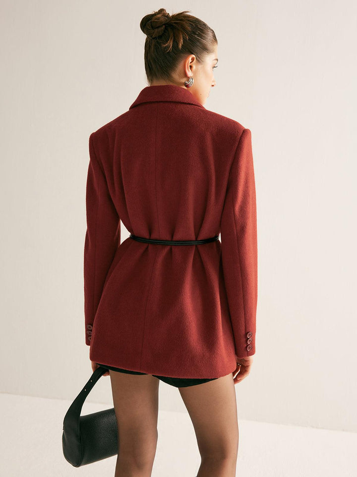Kiremit Rengi Kuşak Detaylı Yün Ceket