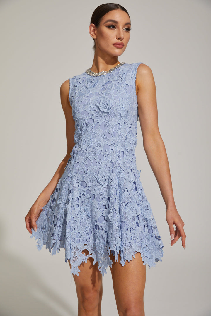 Ophélia Mavi Dantel Kolsuz Mini Elbise
