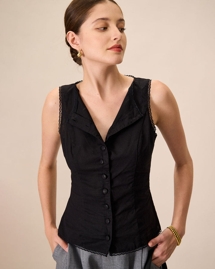Bir gardırop vazgeçilmezi olan bu siyah pamuk keten biberon, katmanlama için mükemmel ve tek parça olarak da giyilebilen şık bir zarafet sunar.
