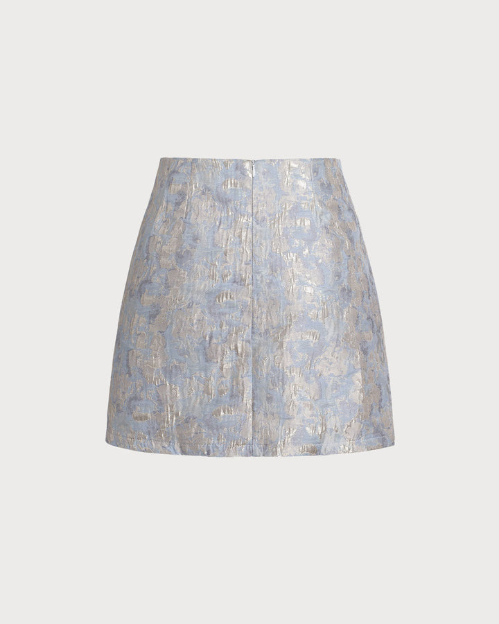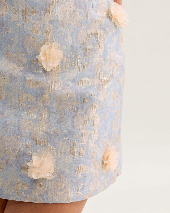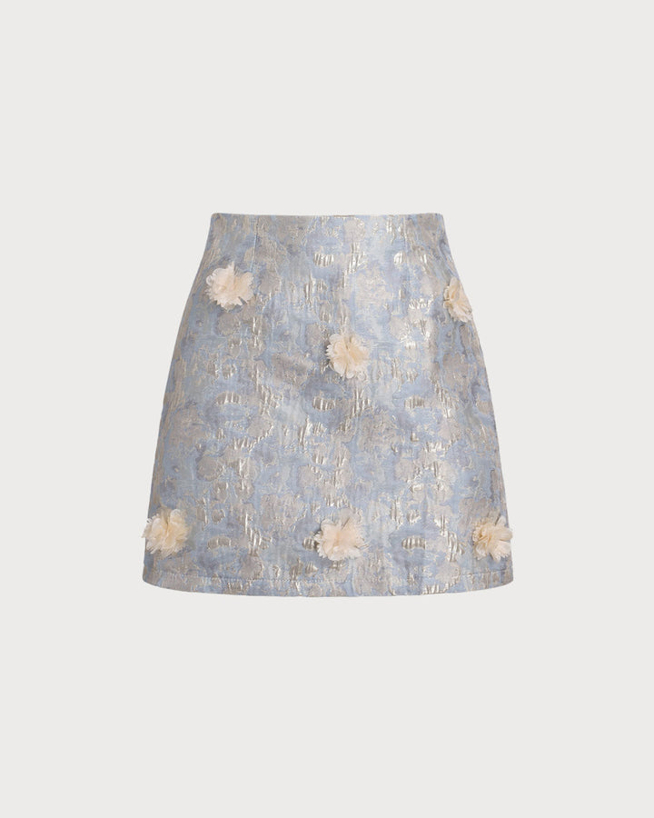 Mavi Çiçek Desenli A Kesim Mini Etek