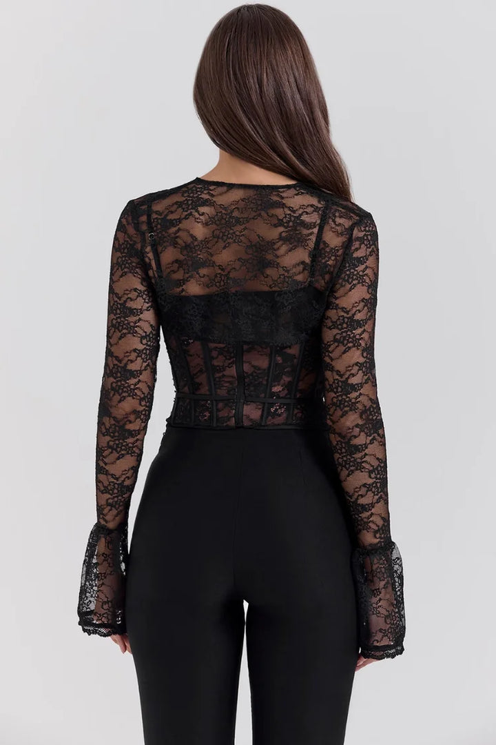 Jasmine, romantizm ve sedasyonu bir araya getiren şık bir korsajdır. Hafif astarlı cup'lar ve silueti şekillendiren tasarımıyla, zarif bir şekilde vücut hatlarını vurgular. Uzun kollu yapısı ve dantel detayları ona eşsiz bir hava katar. Beldeki fiyonku ile şık bir kum saati formu yaratır, her tarzda mükemmel uyum sağlar.