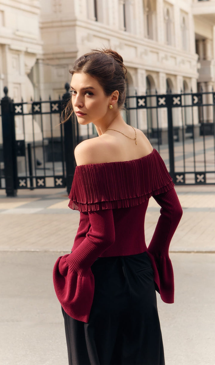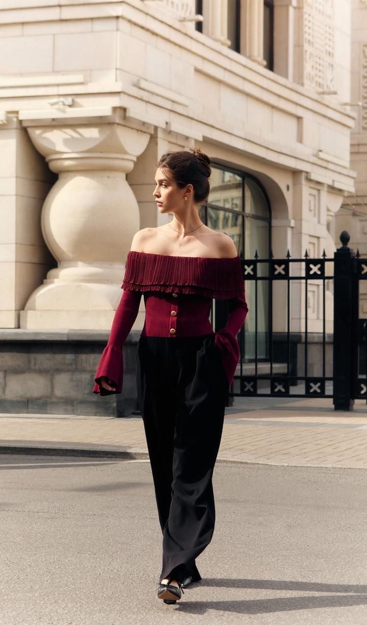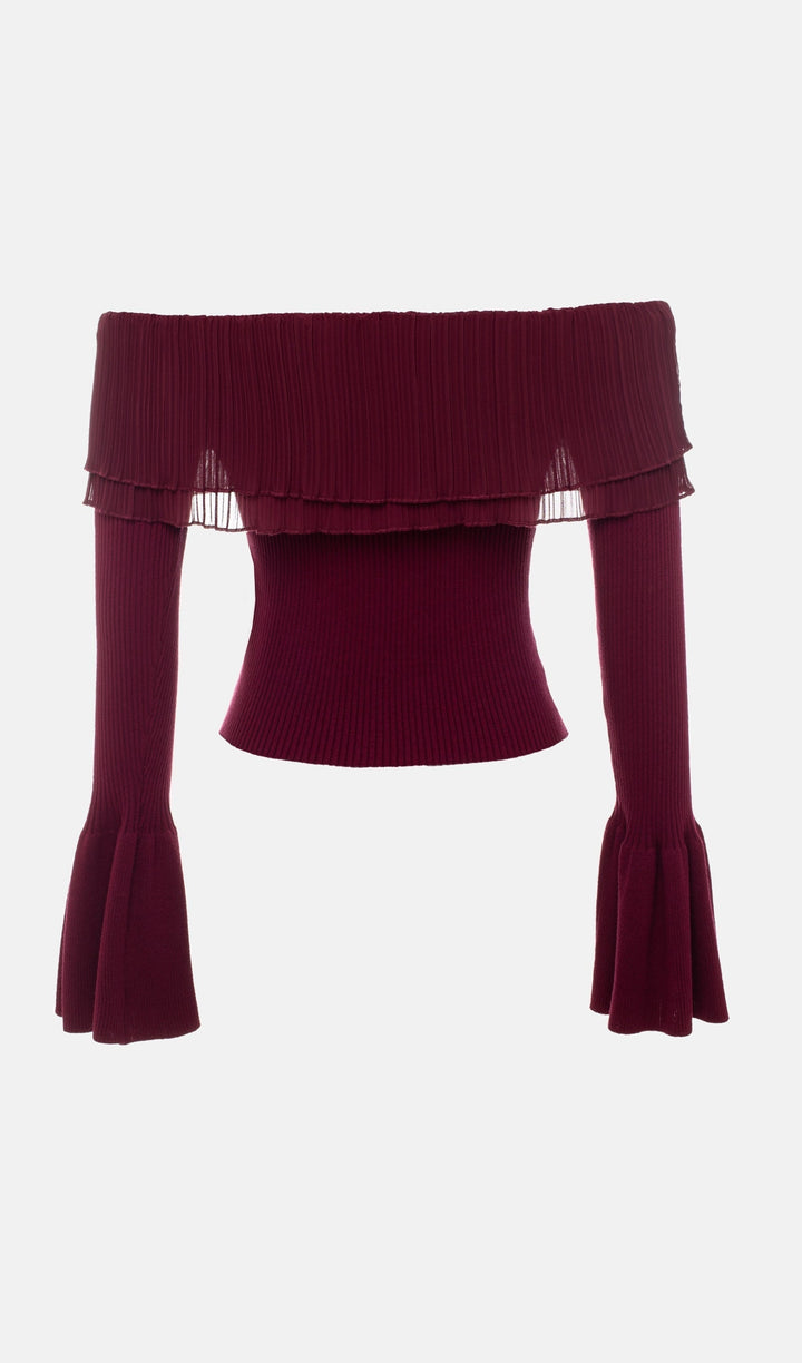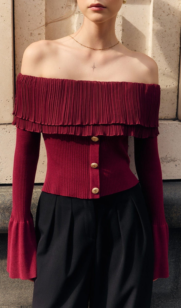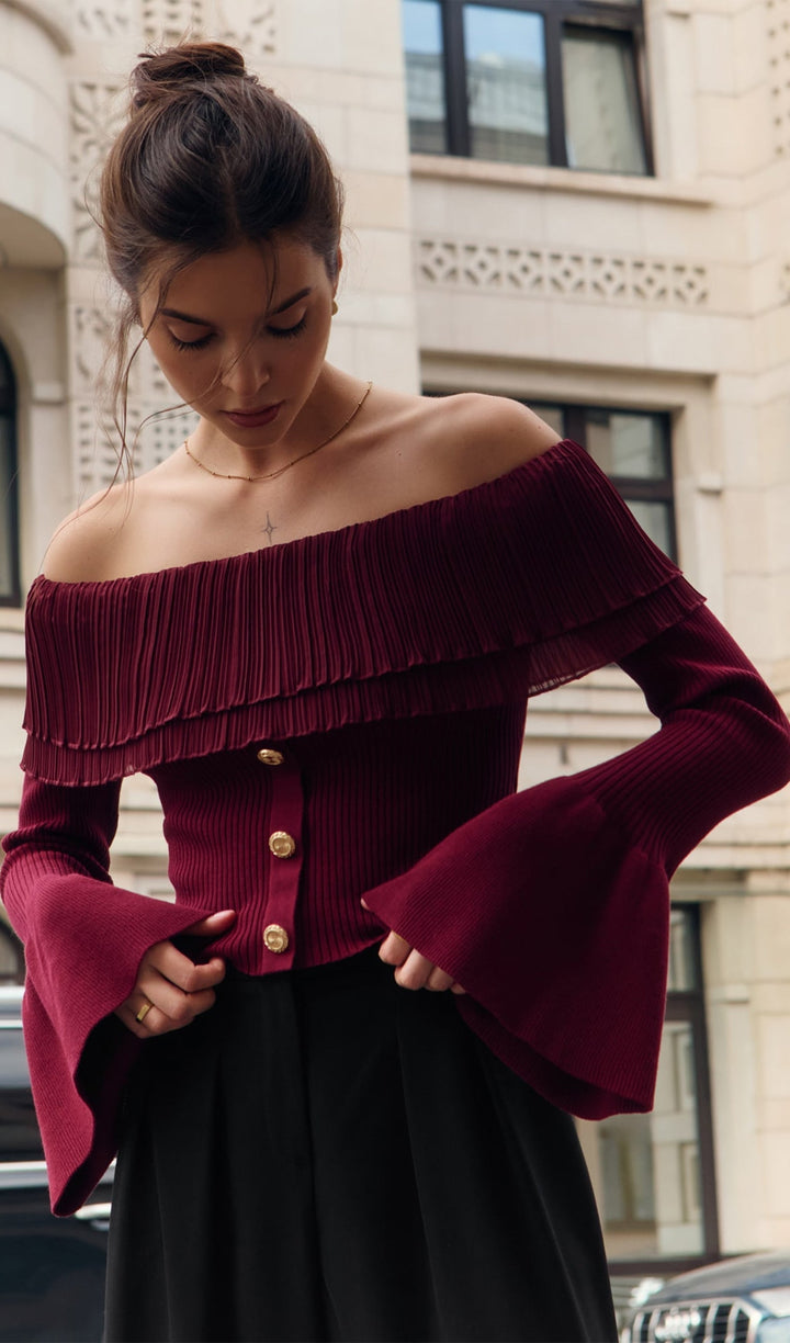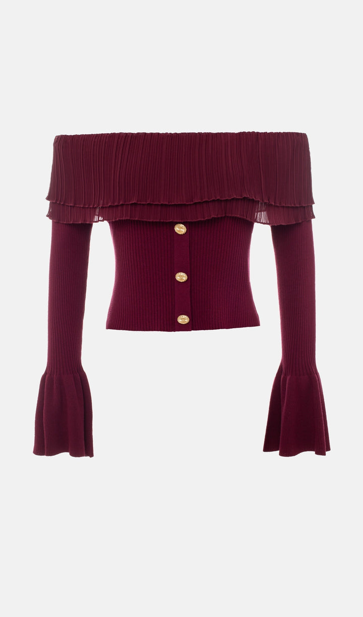 Flier Starplez Fırfır Düğme Detay Üst - Bordo