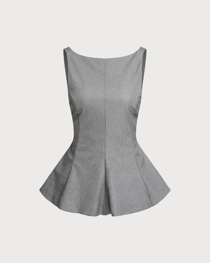 Gri Yuvarlak Yaka Sırtı Açık Atlet