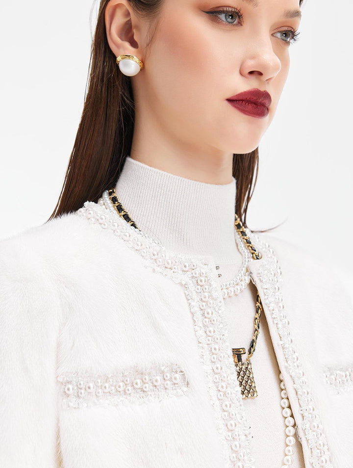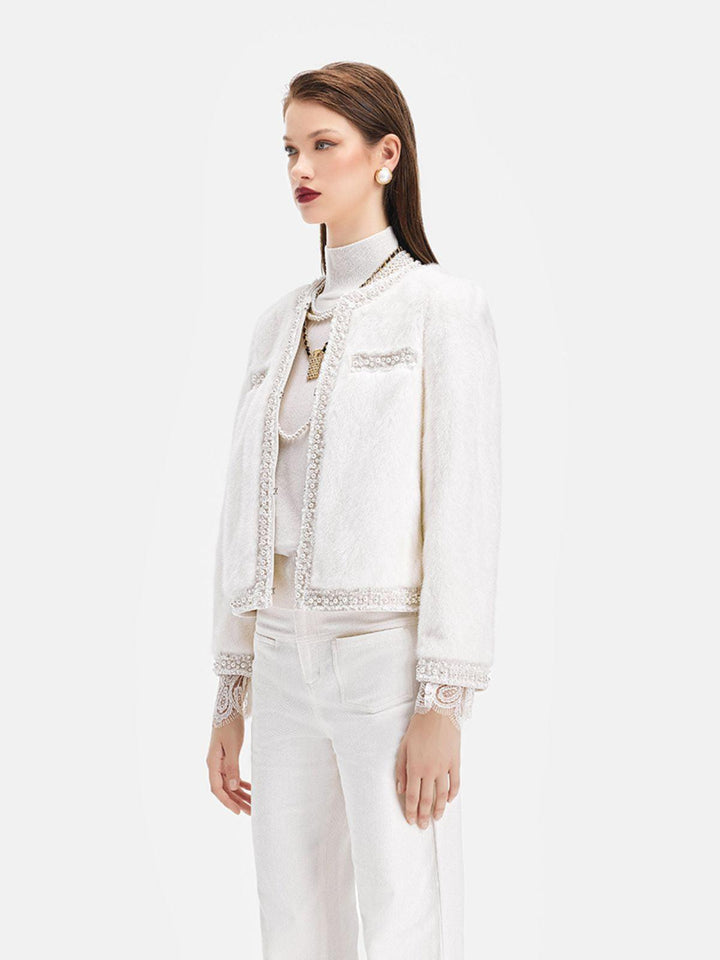 Zarif inci detayları ve modern tasarımıyla bu ceket, sofistike stilinize eşlik ediyor. Hem özel günlerde hem de günlük kombinlerinizde rahatlıkla tercih edebilirsiniz. Şıklığın ve zarafetin buluştuğu bu parça, gardırobunuzun vazgeçilmezi olacak!