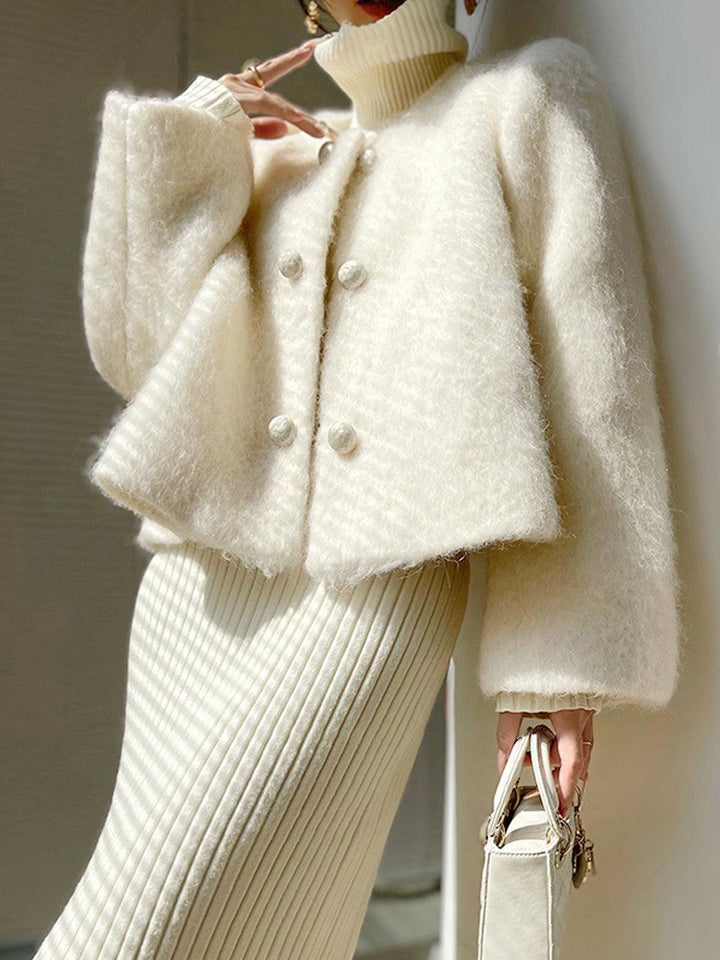 Soğuk kış günlerinde hem şıklığı hem de sıcaklığı bir arada sunan yün ceket! İncili düğmeleri ve hacimli kesimiyle zarif bir dokunuş yaparken, her kombine uyum sağlar. Gardırobunuzun olmazsa olmazı!