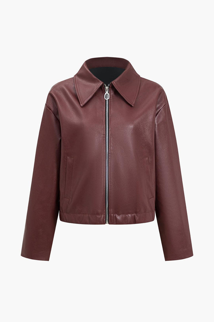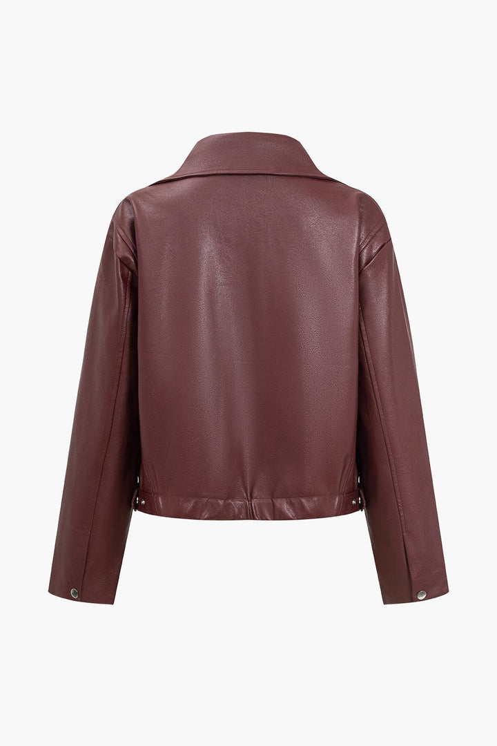 Luxe Burgundy Faux Leather Ceket ile soğuk günlerde bile tarzınızdan ödün vermeyin!