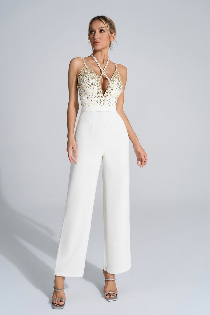 Matilda Beyaz Payetli İşlemeli Tulum