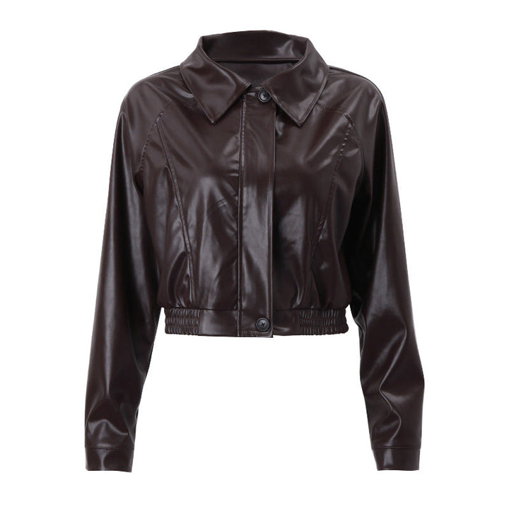 Cesur ve modern bir görünüm sunan Kahverengi Deri Crop Ceket, parlak dokusu ve kısa kesimiyle dikkat çekiyor. Fermuarlı ön tasarımı ve geniş yaka detayıyla sokak stiline güçlü bir hava katar. Jean, mini etek veya elbiselerle kombinlenerek hem gündüz hem de gece şıklığında kullanılabilir.