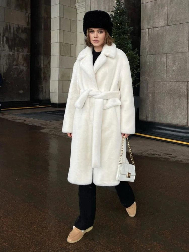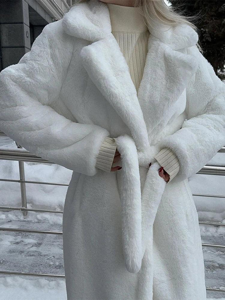 Zarif uzun suni kürk manto ile kışı şık bir şekilde kucaklayın. Benzersiz bir sıcaklık ve sofistike bir görünüm için üretilen kemerli tasarımı ve yumuşak dokusu, zamansız bir kış elyafı yaratıyor. Mevsimlik gardırobunuzu şıklık ve konforla yükseltmek için mükemmeldir.