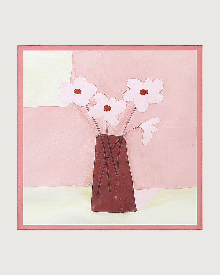 Pembe Çiçekli Kare Eşarp
